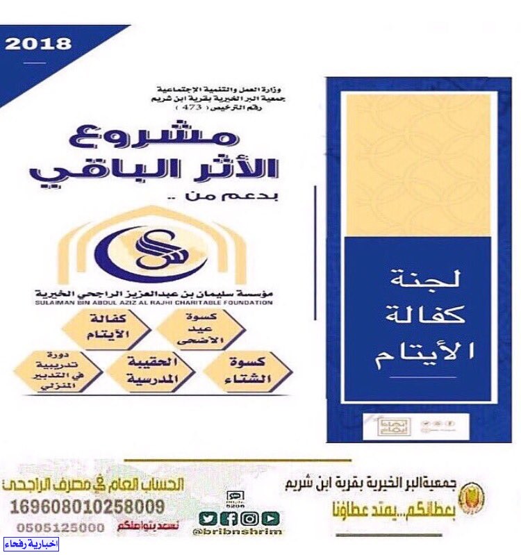 اليوم تم إيداع مبالغ كفالة الايتام الشهرية في حساباتهم لشهر نوفمبر [11] 2018م ضمن مشروع [الآثر الباقي] وذلك تبرع من مؤسسة سليمان عبد العزيز الراجحي الخيرية