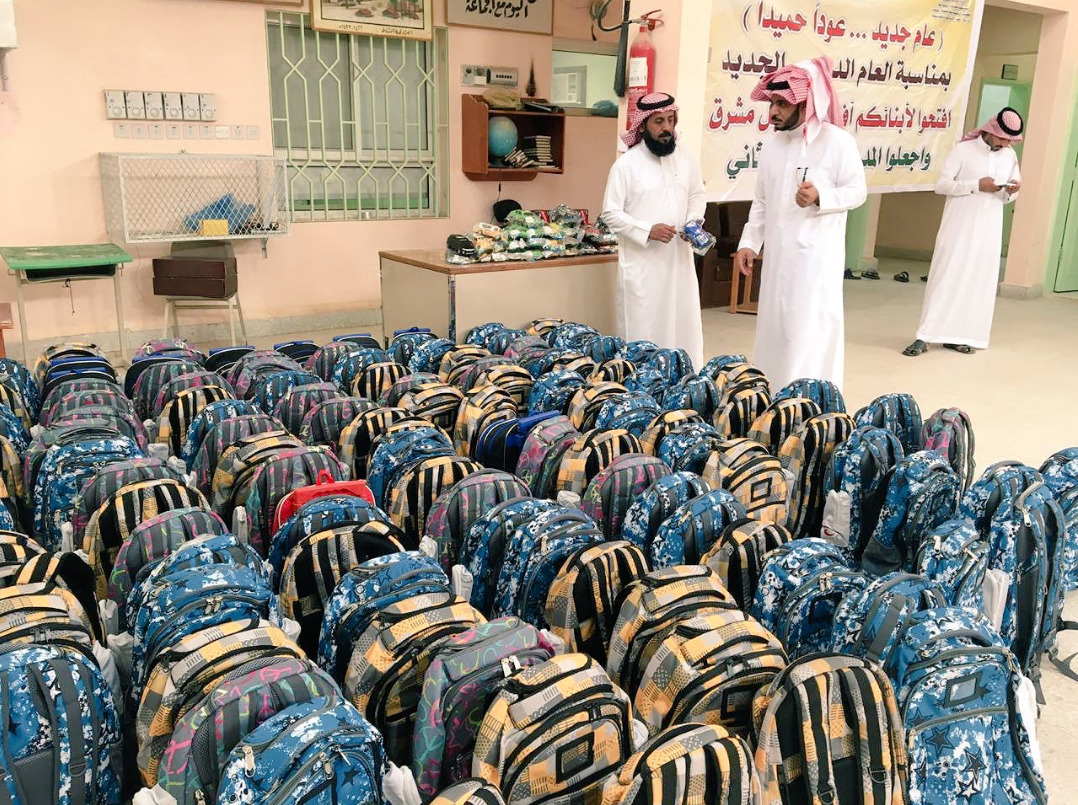 وذلك من خلال أستقبالهم وتوزيع الحقيبة المدرسية.